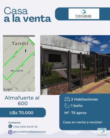 Sobre lote de 10mts x 45mts. Con entrada vehicular y un pequeño galpón. O permuta por un departamento planta baja en esa zona para una persona.