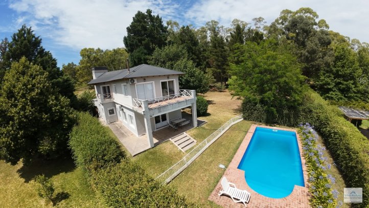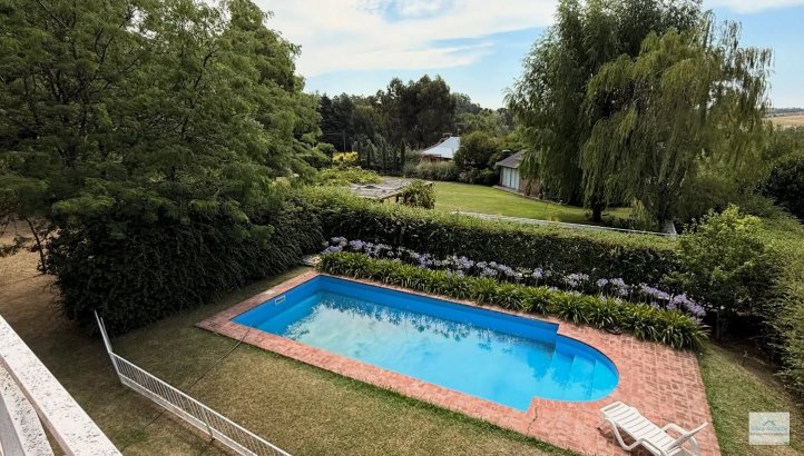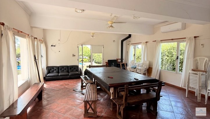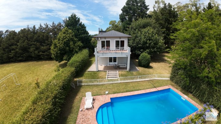 Casa quinta con pileta La propiedad cuenta con 2 plantas. Planta baja: Amplio quincho con parrilla, asador, cocina y baño Planta alta: 3 dormitorios y baño completo Además, depósito, pileta de material Servicios: luz eléctric
